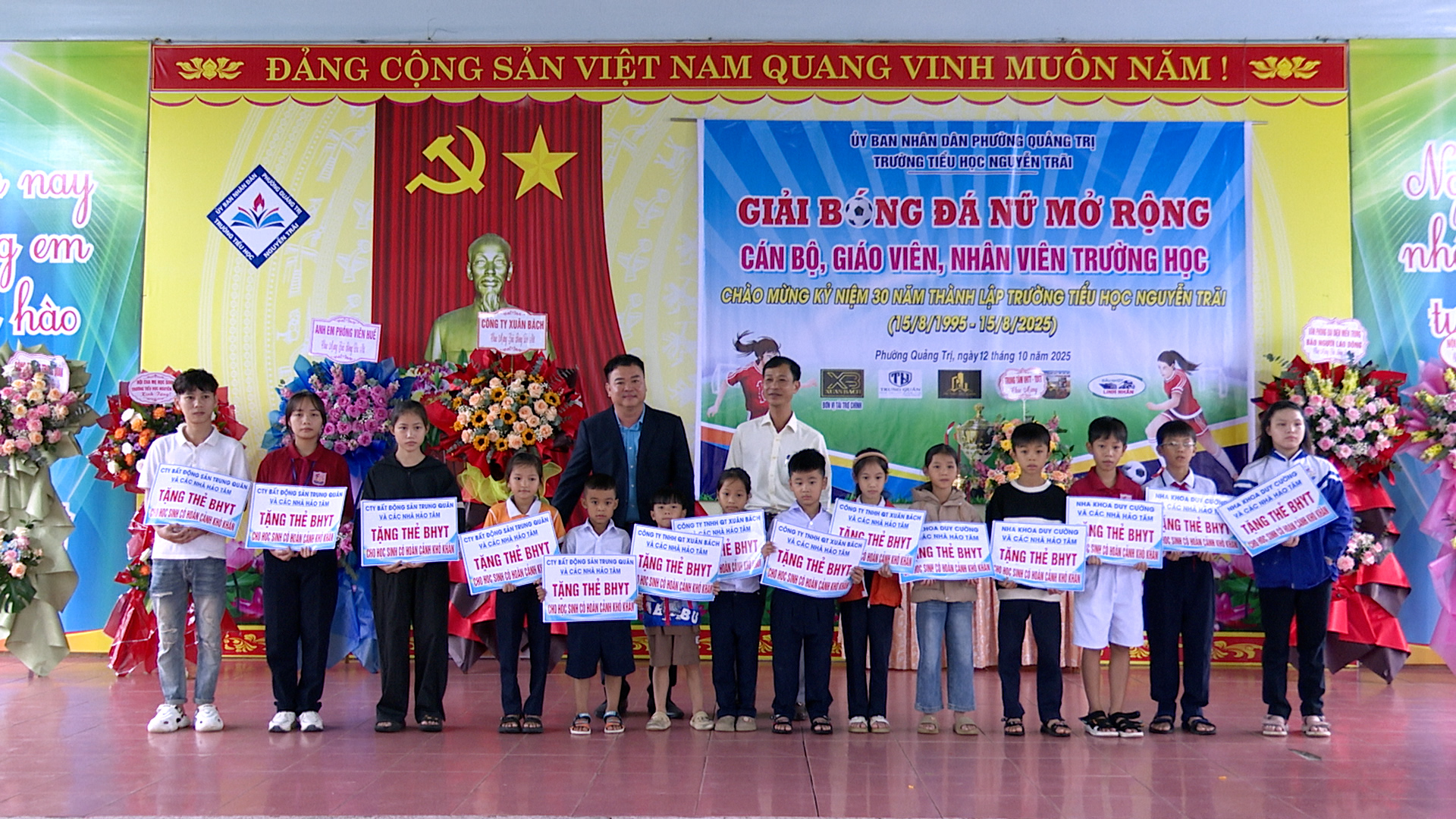 Cũng nhân dịp này, Công ty TNHH QT Xuân Bách và các nhà hảo tâm đã trao tặng 25 thẻ bảo hiểm y tế, mỗi thẻ trị giá 631.000 đồng/năm cho các em học sinh có hoàn cảnh đặc biệt khó khăn trên địa bàn; Trao tặng trên 35 triệu đồng, 1 tivi (55 in) cho 6 đơn vị trường học để phục vụ việc học tập, sinh hoạt của học sinh. Ngoài ra, mỗi trường được hỗ trợ 1 năm đọc báo giấy Người Lao Động miễn phí. Đây là những phần quà có ý nghĩa thiết thực, góp phần sẻ chia, động viên tinh thần đối với các em học sinh và các đơn vị trường học.