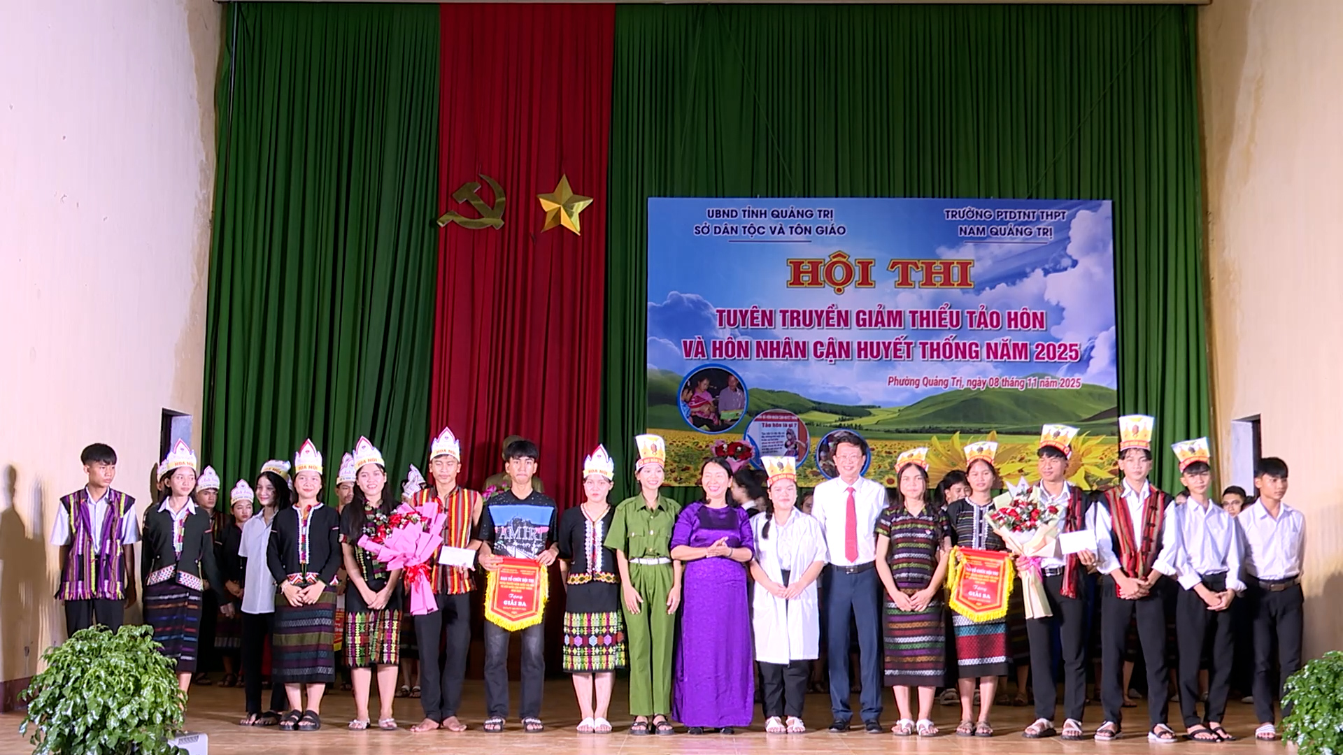 Tối ngày 8/11/2025, tại Trường PTDTNT THPT Nam Quảng Trị, Sở Dân tộc và Tôn giáo tỉnh Quảng Trị phối hợp với nhà trường tổ chức Hội thi Tuyên truyền giảm thiểu tảo hôn và hôn nhân cận huyết thống năm 2025.