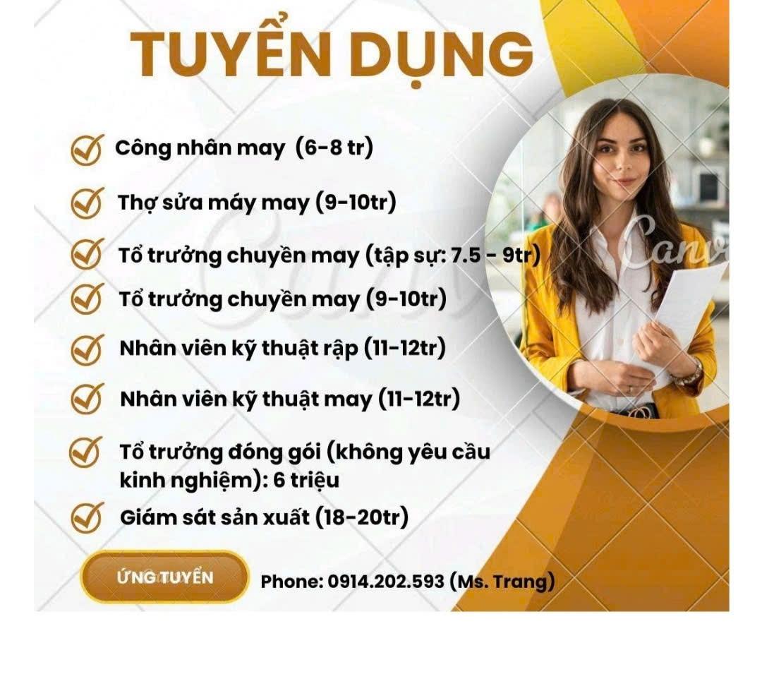 - Tổ trưởng chuyền may (tập sự): 01 người