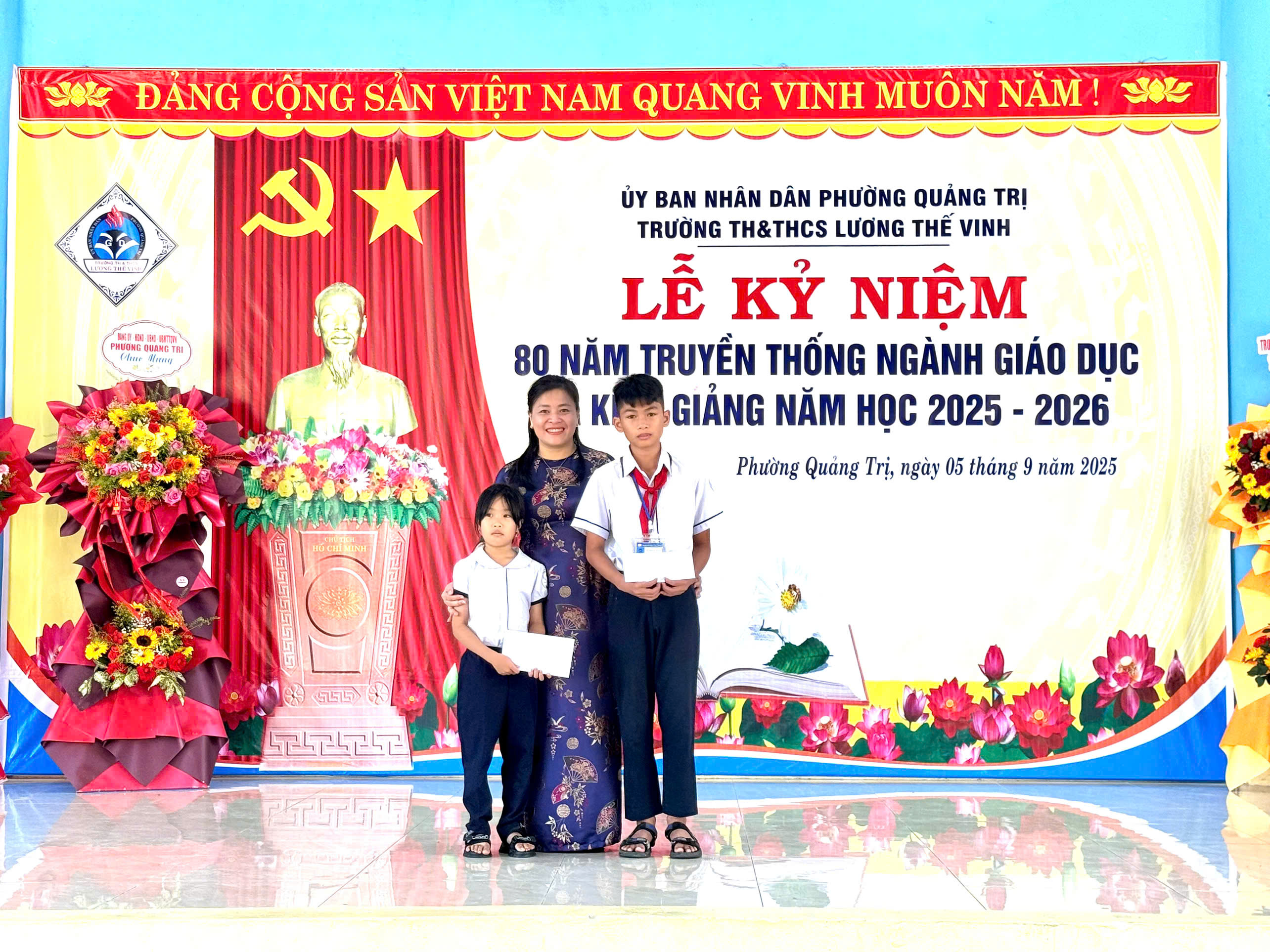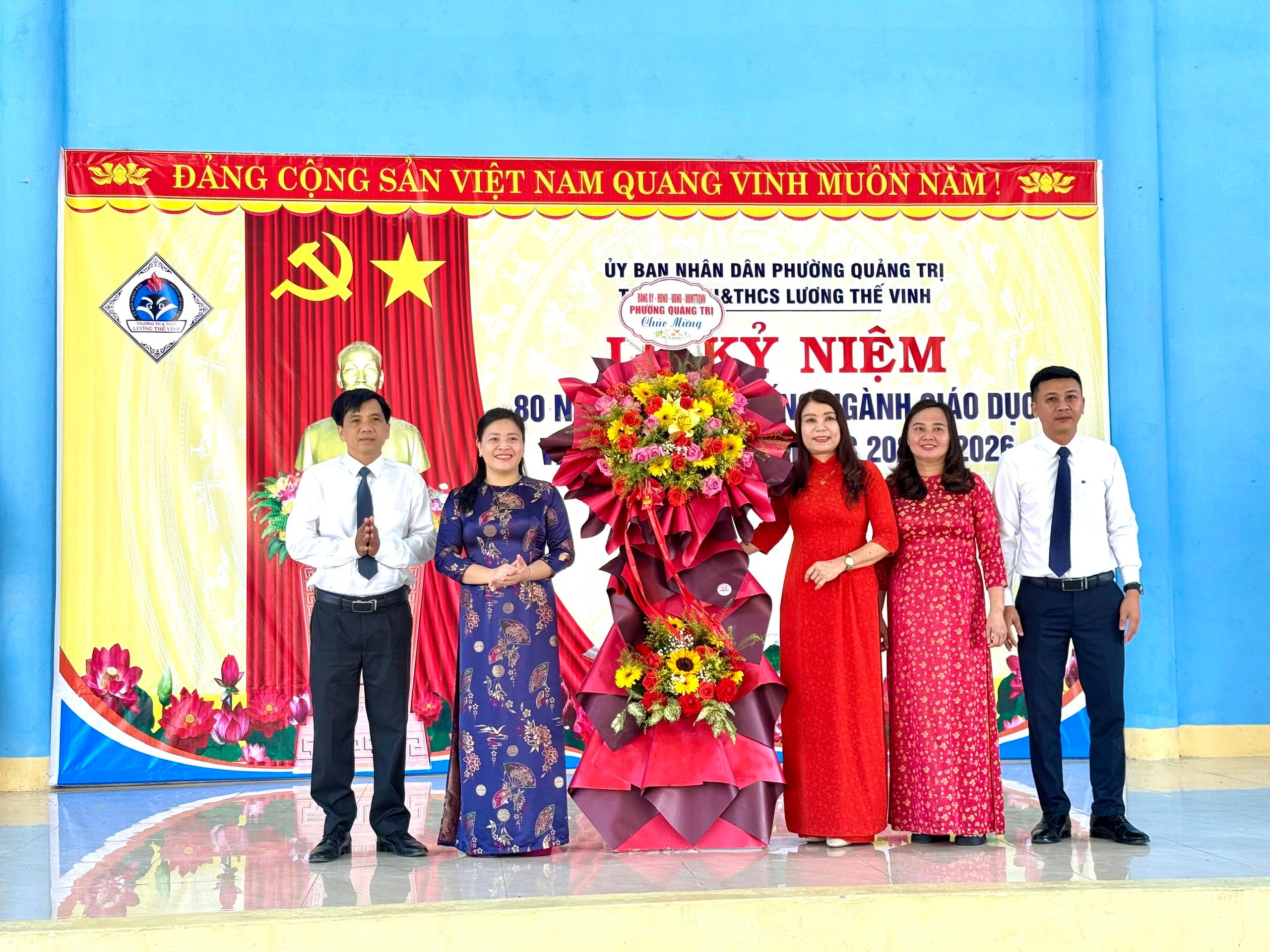 Hòa chung không khí nô nức của ngày hội toàn dân đưa trẻ đến trường, sáng nay ngày 5/9, trường Tiểu học & THCS Lương Thế Vinh đã tổ chức Lễ kỷ niệm 80 năm truyền thống Ngành Giáo dục và Khai giảng năm học 2025 - 2026. Dự và chúc mừng ngày hội có đồng chí Nguyễn Thị Mai Anh - Phó Bí thư Đảng ủy- Chủ tịch UBND phường Quảng Trị.