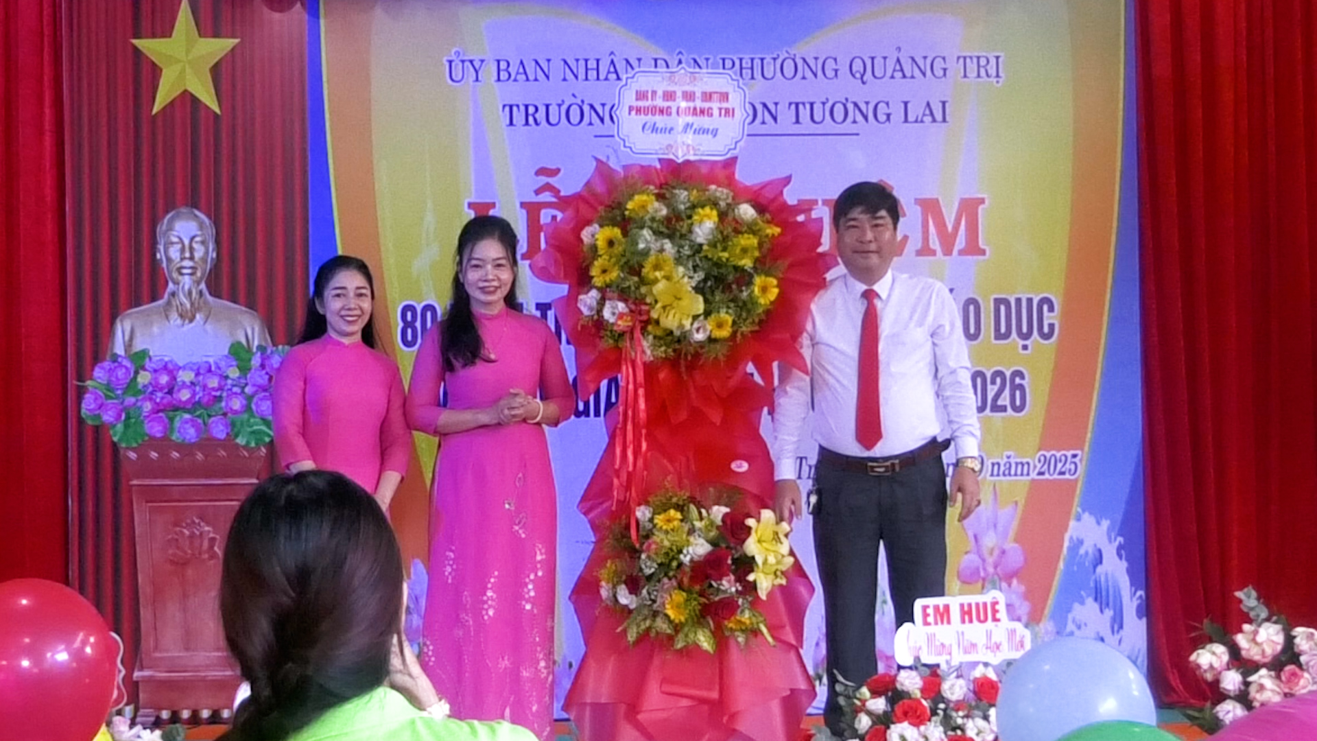 Sáng ngày 5/9, hòa chung không khí tưng bừng của cả nước trong Ngày hội toàn dân đưa trẻ đến trường, Trường Mầm non Tương Lai đã tổ chức Lễ khai giảng năm học mới 2025 – 2026. Dự và chúc mừng ngày hội có đồng chí Lê Phương Bắc - UVBTV- Phó Chủ tịch UBND phường Quảng Trị.