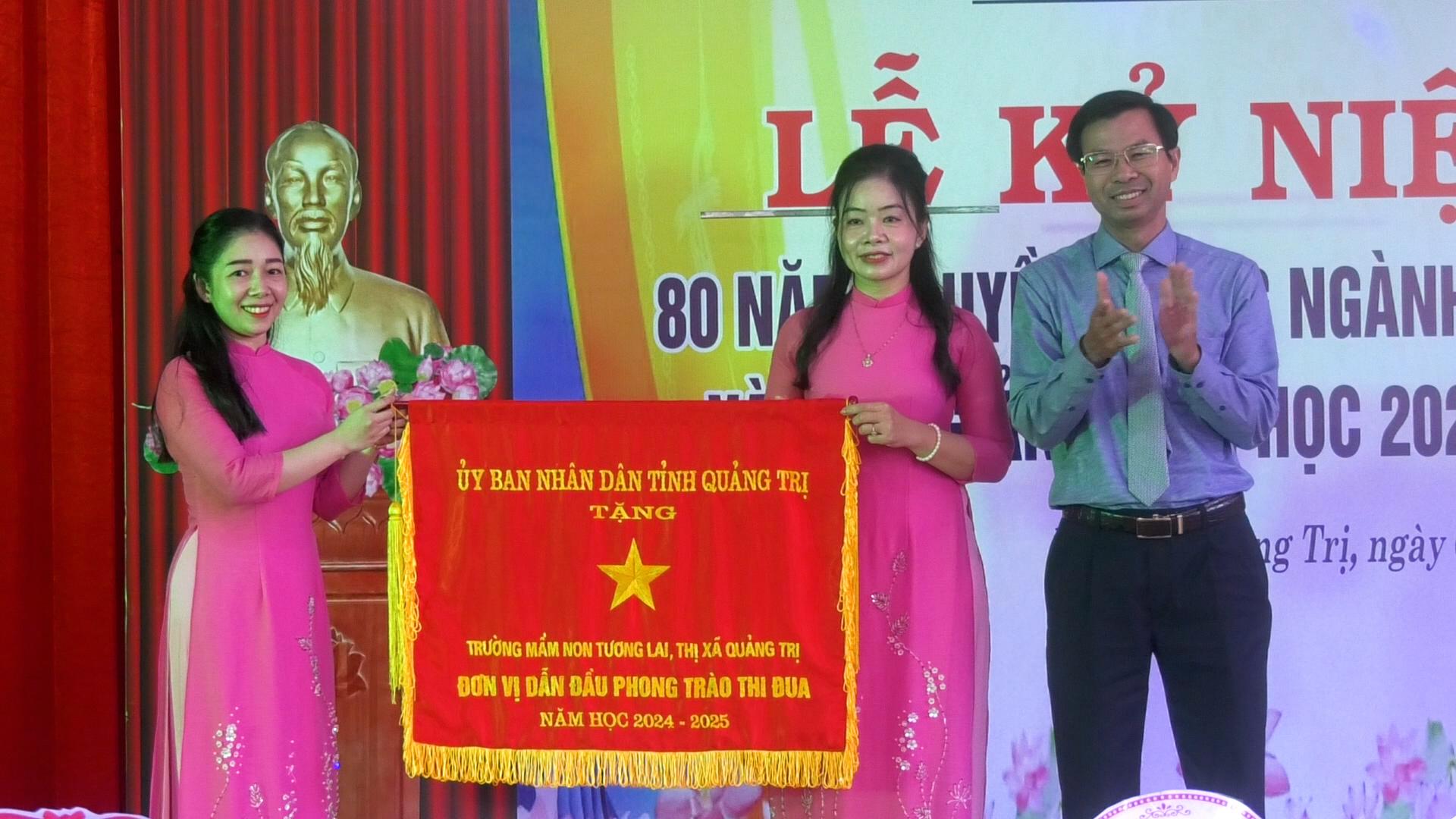 Dịp này, Trường Mầm non Tương Lai vinh dự được UBND tỉnh tặng Cờ thi đua vì những thành tích nổi bật trong phong trào thi đua dạy tốt - học tốt.