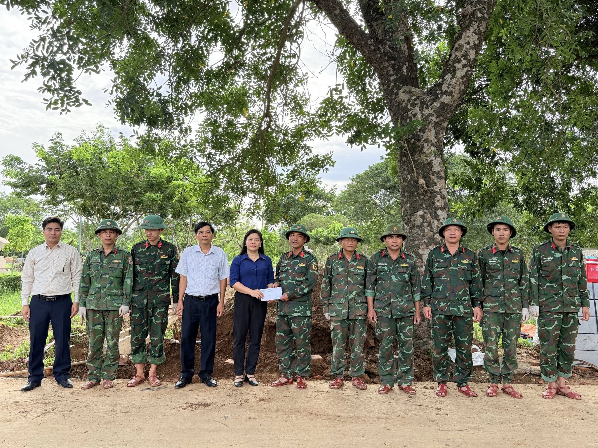 Chủ tịch UBND Phường Quảng Trị thăm tặng quà Đội quy tập hài cốt liệt sĩ 584 đang làm nhiệm vụ tìm kiếm, quy tập hài cốt liệt sĩ tại Thành Cổ Quảng Trị