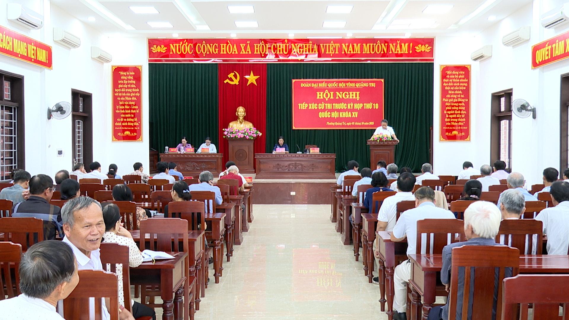 Cử tri Phường Quảng Trị bày tỏ sự quan tâm đối với những vấn đề sẽ được trình tại kỳ họp cuối cùng của Quốc hội khóa XV sắp tới. Đồng thời kiến nghị một số vấn đề như: Cần sớm chuyển đổi mục đích sử dụng đất của các trụ sở bỏ trống để phục vụ cho việc phát triển chung của địa phương. Có phương án, chính sách cụ thể trong bố trí công việc và chế độ phù hợp cho cán bộ xã, phường, thôn. Cử tri thôn Như Lệ kiến nghị các cấp sớm đầu tư kinh phí hoàn thiện bờ kè, đảm bảo việc đi lại và sinh hoạt cho người dân nơi đây. Đối với các hộ nông dân bị thiệt hại sau dịch bệnh, thiên tai, cần có sự hỗ trợ kịp thời giúp họ khắc phục hậu quả, sớm ổn định cuộc sống.