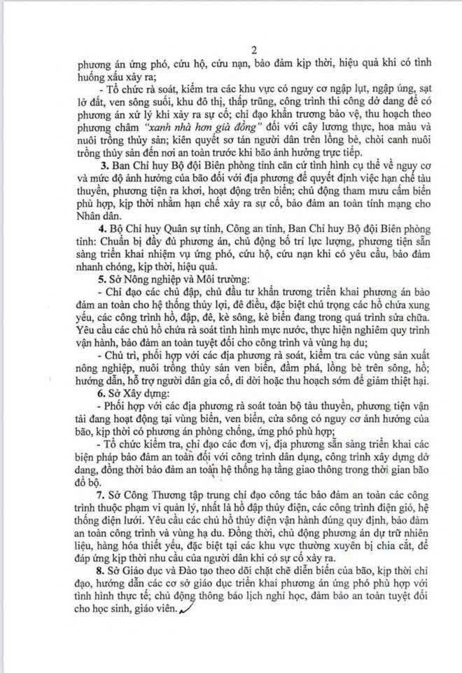 Các sở, ban, ngành, địa phương, UBND các xã/phường/ đặc khu khẩn trương triển khai phương án phòng chống bão, đảm bảo an toàn tính mạng và tài sản Nhân dân.